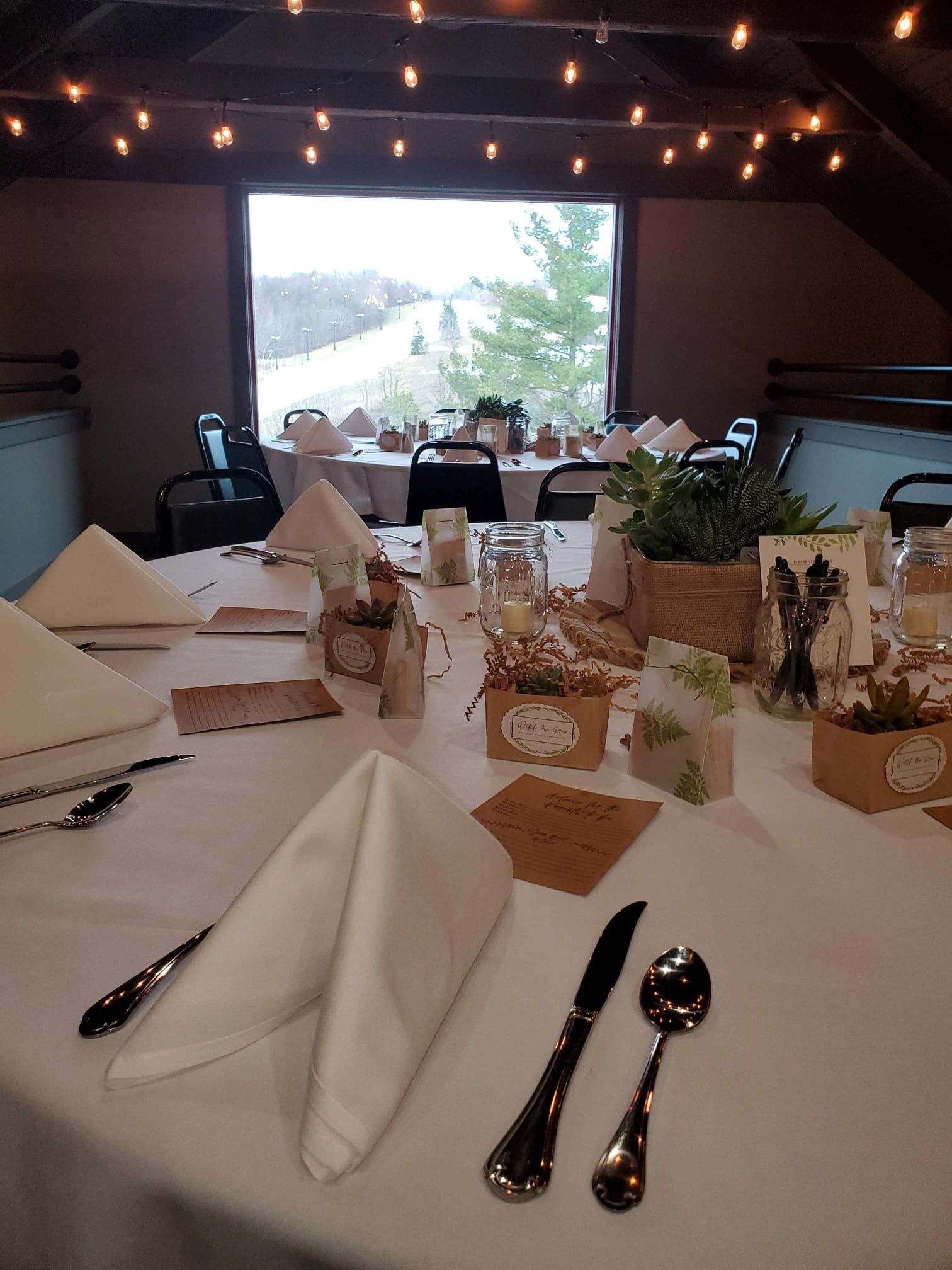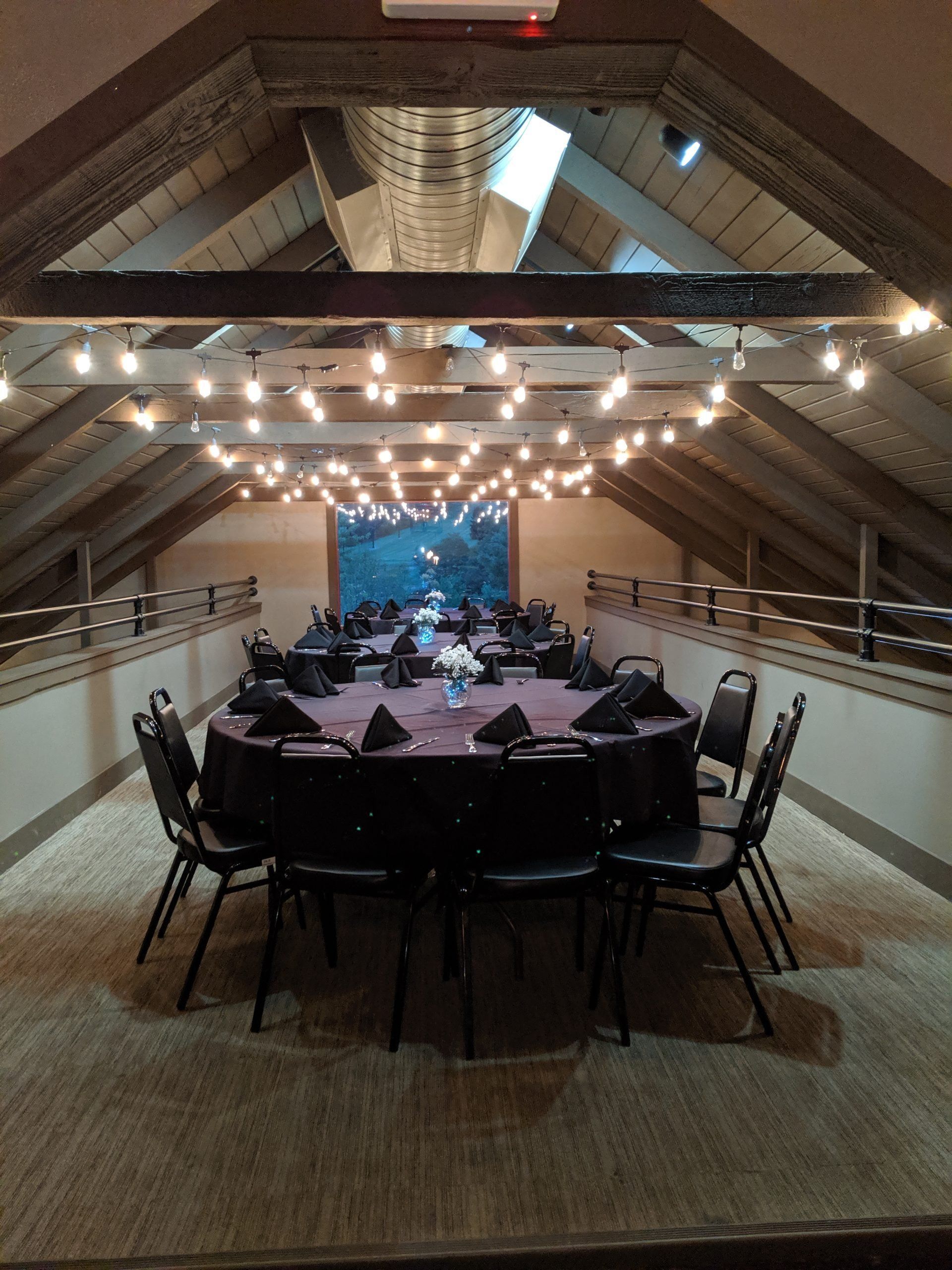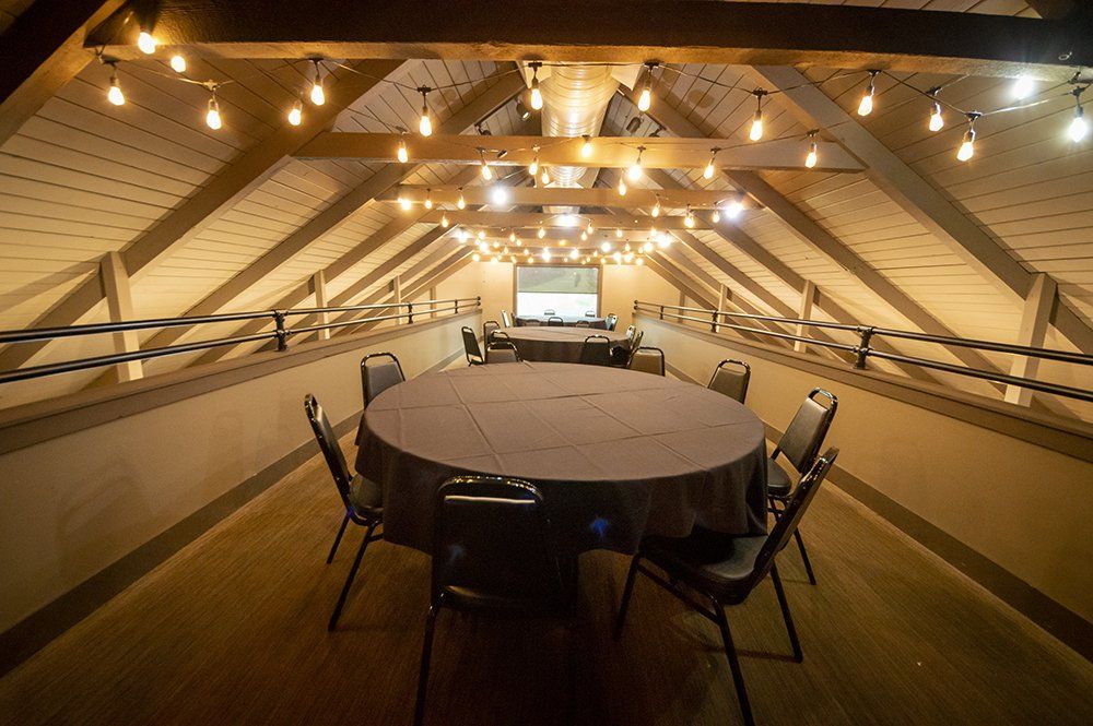 Our rustic and private loft, housed in what was once the barn’s hay loft, overlooks the restaurant and views of Alpine Valley. A country-chic vibe under a canopy of strung Edison bulbs provides a lovely backdrop for special events from rehearsal dinners to showers, retirement parties and family reunions. The elevated area seats up to 40 guests for formal dining or up to 65 guests for casual appetizer events.